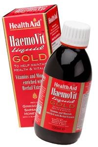 Για δυνατό και υγιές αίμα, χρειάζονται σίδηρος και βιταμίνη Β12, που βοηθούν στη δημιουργία δυνατής αιμογλοβίνης, το ενεργό μέρος των ερυθρών αιμοσφαιρίων. Τα υγιή ερυθρά αιμοσφαίρια μας κάνουν να αισθανόμαστε δραστήριοι και γεμάτοι ζωή, δίνοντας δύναμη, σφρίγος, ορμή και ενέργεια. To HaemoVit liquid Gold δίδει σίδηρο, βιταμίνη Β12 και φολικό οξύ, συστατικά απαραίτητα στη δημιουργία υγιών ερυθρών αιμοσφαιρίων. Ακόμα φυτικά συστατικά όπως Ginseng, Ginkgo biloba και Sarsaparilla, που δίνουν ενέργεια, δύναμη και ζωντάνια. Η βιταμίνη C που περιέχει είναι απαραίτητη για την απορρόφηση του σιδήρου από τον οργανισμό. To HaemoVit της Health Aid είναι ένα ιδανικό συμπλήρωμα διατροφής παιδιών, γυναικών, χορτοφάγων, αθλητών και για όσους αναρρώνουν από εγχείρηση ή ασθένεια.