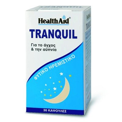 Ο ύπνος είναι ο φυσικός τρόπος για να ξεκουράζεται και να ηρεμεί ο οργανισμός, ώστε να αντιμετωπίζει τη πίεση του σύγχρονου τρόπου ζωής. Δημιουργείται όμως ένας φαύλος κύκλος κατά τον οποίο ο ύπνος εμποδίζεται λόγω του υπερβολικού στρες κατά τη διάρκεια της ημέρας, του άγχους & των πολλών προβλημάτων. Το Tranquil της Health Aid είναι ειδικά παρασκευασμένη σύνθεση με εκχυλίσματα βοτάνων, Κράταιγο, Πασσιφλόρα, Βαλεριάνα & Αγιαννόχορτο. Η συνεργική τους δράση βοηθά τον οργανισμό να αντεπεξέλθει στις πιέσεις όπως νευρικότητα, άγχος και αϋπνία χωρίς να προκαλεί εθισμό και χωρίς τις συνηθισμένες παρενέργειες.